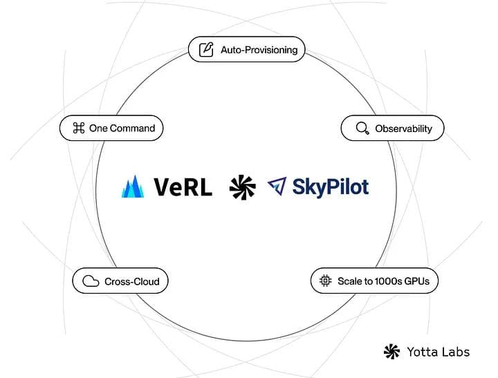 Today, VeRL (Volcano Engine Reinforcement Learning), an open-source RL library for LLMs, just got a massive upgrade. Thanks to a new SkyPilot integration contributed by Yotta Labs, VeRL users can now launch and scale multi-node RLHF training with a single command.
